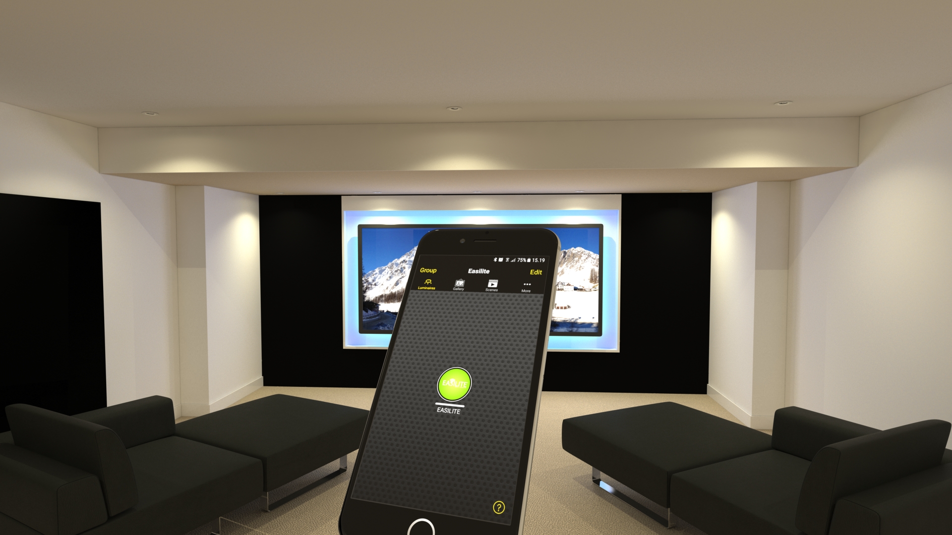 We started by having the 3D model file supplied to us, it was converted into 3DSMax. The internals were simplified and textured. The packaging was modelled, and we created a complete cinema room set, above and below the ceiling, then connected the product with wiring to the light fittings. The whole scene was animated with a number of cameras and movie file created.